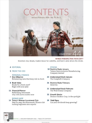 Elke editie van BetterInvesting Magazine zit boordevol waardevolle content die u een strategisch voordeel geeft. Ontdek zorgvuldig geselecteerde ideeën voor aandelen en beleggingsfondsen, aangevuld met diepgaande profielen van bedrijven die u een compleet beeld geven van hun potentieel. Verrijk uw financiële kennis met onze educatieve artikelen, die essentiële concepten uitleggen en u helpen betere persoonlijke financiële keuzes te maken. Bovendien biedt het magazine inzicht in bredere economische kwesties en commentaar van experts, evenals onafhankelijke recensies van boeken en software die uw investeringsstrategie kunnen ondersteunen.