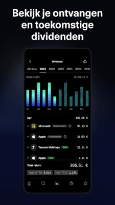 getquin - Portfolio Tracker is jouw realtime tracker voor al je investeringen. Volg aandelen, ETF's, onroerend goed en meer in één dashboard. Zie je netto waarde 24/7, beheer je complete portfolio en neem geïnformeerde financiële beslissingen. Inclusief gepersonaliseerde dividendkalender.