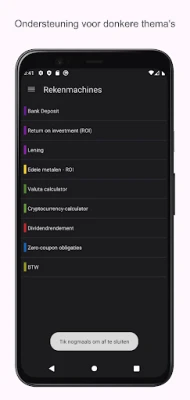 Optimaliseer uw investeringsstrategieën met gedetailleerde Rendement op Investering (ROI) analyses en duik in de fijne kneepjes van nulcouponobligaties, inclusief yield en YtM. Zelfs alledaagse financiële taken worden vereenvoudigd met een snelle calculator voor Belasting over de Toegevoegde Waarde (BTW). Voor diegenen met interesse in tastbare activa, biedt dit platform ook een gespecialiseerde ROI-berekening voor edelmetalen zoals goud, zilver en platina. De functionaliteit blijft groeien, met plannen om in de nabije toekomst nog meer geavanceerde financiële tools en berekeningen toe te voegen, waardoor uw financiële management nog completer wordt.
