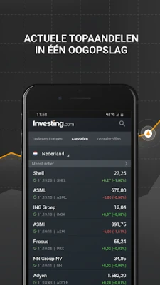 Ontdek Investing.com, uw onmisbare partner in de dynamische wereld van financiële markten. Van de kleinste verschuiving in grondstofprijzen tot de grootste bewegingen op wereldwijde beurzen, Investing.com biedt een ongeëvenaard overzicht van meer dan 100.000 financiële instrumenten, live gevolgd over meer dan 70 internationale markten. Of u nu handelt in aandelen zoals Shell en Tesla, valuta's zoals EUR/USD, of de prestaties van belangrijke indexen zoals de AEX en S&P 500 volgt, Investing.com brengt alle cruciale data direct binnen handbereik.