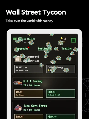 Breid uw portfolio strategisch uit door aandelen in steeds grotere en lucratievere ondernemingen te verwerven. Optimaliseer uw bedrijfsvoering door topexperts en consultants aan te trekken, die processen stroomlijnen en de snelheid van uw winstgeneratie drastisch verhogen. Maar uw invloed reikt verder dan de economie alleen. Gebruik uw groeiende kapitaal om politieke campagnes te ondersteunen en geleidelijk de controle over de regering te verwerven. Deze politieke macht levert u waardevolle energie op, een cruciale grondstof die u door slimme handel kunt vermenigvuldigen. Deze energie is de sleutel tot het verder stimuleren van uw winsten en het domineren van de markt.