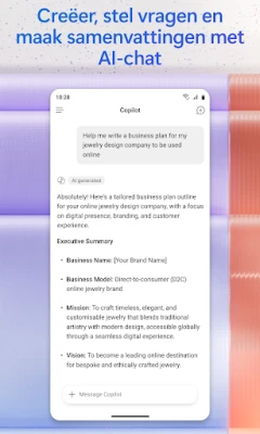 Ontdek een revolutie in productiviteit met Microsoft 365 Copilot, uw persoonlijke, AI-gedreven assistent. Deze innovatieve applicatie transformeert de manier waarop u werkt en creëert. Communiceer moeiteloos in natuurlijke taal, via tekst of spraak, en laat Microsoft 365 Copilot complexe taken voor u uitvoeren. Of het nu gaat om het bondig samenvatten van een lang document op uw apparaat of vanuit de cloud, het opstellen van professionele e-mails, of het analyseren van uitgebreide spreadsheets; u formuleert de opdracht en Microsoft 365 Copilot levert de resultaten. Bereid u voor op uw dag, brainstorm over nieuwe ideeën en krijg directe antwoorden, allemaal handsfree.