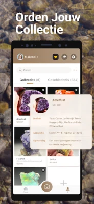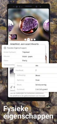 Maar Rock Identifier biedt meer dan alleen directe herkenning. Het is een diepgaande bron van kennis, boordevol gedetailleerde informatie over de eigenschappen, formaties en boeiende feiten van elke steen – van genezende kristallen tot geboortestenen en de symboliek achter zodiak-edelstenen. Bovendien stelt Rock Identifier je in staat om jouw persoonlijke geologische ontdekkingen zorgvuldig vast te leggen en te organiseren. Creëer een unieke verzameling door foto's toe te voegen en gedetailleerde aantekeningen te maken over de vindplaats, aankoopdatum, prijs en afmetingen van jouw eigen vondsten, zo bouw je een digitaal museum van jouw meest dierbare geologische schatten.