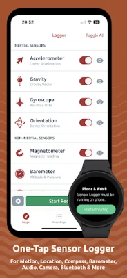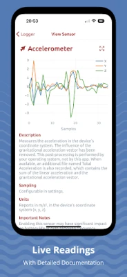 Sensor Logger verzamelt, registreert en visualiseert sensorinformatie van je telefoon en Wear OS-apparaten. Krijg live inzicht in data van versnellingsmeter, GPS, audio en meer. Neem op de achtergrond op, beheer via interactieve grafieken en exporteer in diverse formaten zoals CSV en Excel. Een essentiële tool voor onderzoekers, docenten en iedereen met interesse in STEM-data.