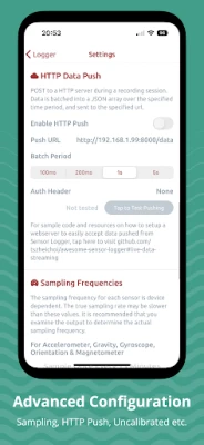 Of u nu de acceleratie van uw apparaat, de magnetische veldsterkte of de barometrische hoogte wilt vastleggen, Sensor Logger staat voor u klaar. Van GPS-coördinaten, snelheid en koers tot geluidsniveaus via de microfoon, stappen via de stappenteller, en zelfs de aanwezigheid van nabijgelegen Bluetooth-apparaten; de mogelijkheden zijn legio. Visualiseer uw verzamelde data direct met interactieve grafieken en live metingen, of stream ze real-time via HTTP/MQTT voor dynamische analyses. Exporteer uw gegevens naar handige formaten zoals gezipte CSV en JSON, met de optie om metingen te hersamplen en aggregeren. Bovendien kunt u tijdens de opname annotaties met tijdstempel toevoegen en specifieke sensoren in- of uitschakelen, en de bemonsteringsfrequentie naar wens aanpassen voor optimale precisie.